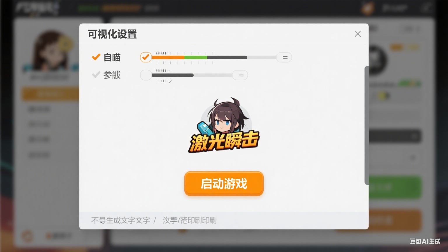 - 可视化设置界面:启动辅助后,弹出简洁设置窗口,可直接勾选 “自瞄”“激光瞬击” 功能,调节激光颜色、自瞄模式、锁定速度等参数,设置完成后点击 “启动游戏”,辅助自动注入模拟器 / PC 端游戏,无需额外操作。